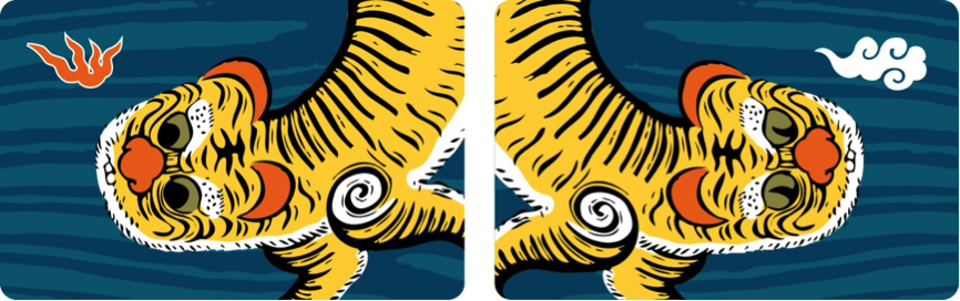 擅長動物寫生的林玉山,除了畫牛,更會畫虎,畫筆下的老虎栩栩如生,虎虎生風。他曾說,老虎最兇的時候,不是開口咆哮的時候,而是老虎還沒張口,低鳴緩施雷威的表情,最讓人不寒而慄。最近「台灣民主國」著名的「藍地黃虎旗」被文化部列為台灣國寶,由於原版已經下落不明,日本畫家高橋雲亭摹繪本,旗面也不完整。因此,在多數歷史教科書和文獻中,採用都是林玉山在1953年重新繪製的「林玉山版黃虎旗」,隨著「藍地黃虎旗」列為台灣國寶,更將是首件本土國寶躍上悠遊卡卡面。