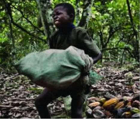 全世界有超過三分之二的可可豆種植於西非,其中尤以象牙海岸和迦納為主要二宗。目前估計光是象牙海岸的可可農場,就約有二十萬像菲力一樣無薪或微薪的童工。聯合國國際勞工組織(International Labor Organization; ILO),在其 182 號條約第三項,將此等工作歸類於最惡劣形式的童工(Worst Form of Child Labor; WFCL),其中包含「人口販賣、壓迫勞力、抵押孩童、雇用童兵、應召雛妓、以及任何有違建康及安全的工作項目」等等。