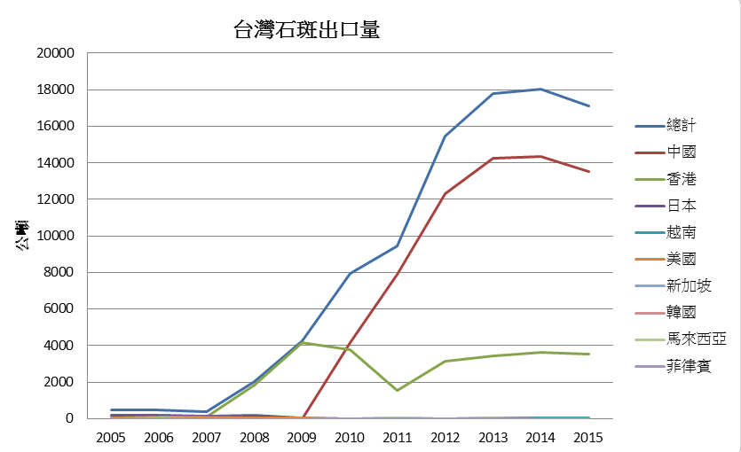 表二:台灣石斑出口量曲線圖(作者整理製表)
