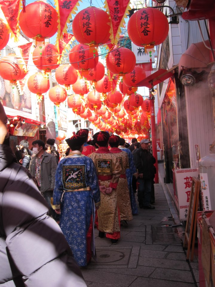 初抵港都,正逢日本舊正月,長崎的中國城張燈結綵,準備慶祝元宵節的到來。來自日本各地的觀光客大概很少看見規模如此龐大的中國城,看著那些高高掛的紅燈籠目瞪口呆,吃角煮(掛包)、強棒麵(什錦麵),整個長崎充滿節慶的氣氛,即使是在同在各地生活的日本人,心情也宛如抵達異國,讓我想起「蝴蝶夫人」歌劇中初達異地而驚詫不已的美國海軍上尉平克頓(B.F. Pinkerton),或者帶著幾個無所適事的弟兄自神戶而來,在各坂道上閒晃的坂本龍馬。