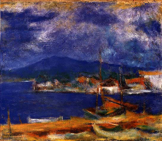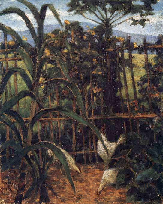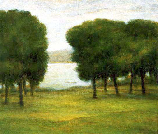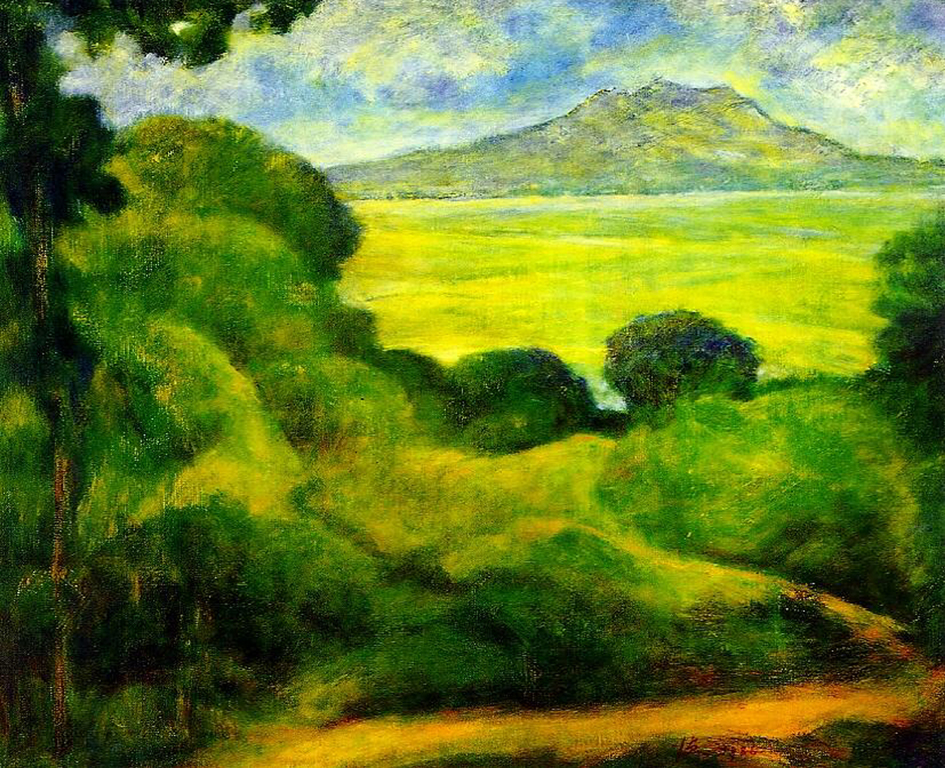 他也常以觀音山為題材,從觀音山眺望父親遇害的八里渡船頭。觀音山系列作品,杳無人煙,畫面所及的,盡是最翠綠的台灣風土。