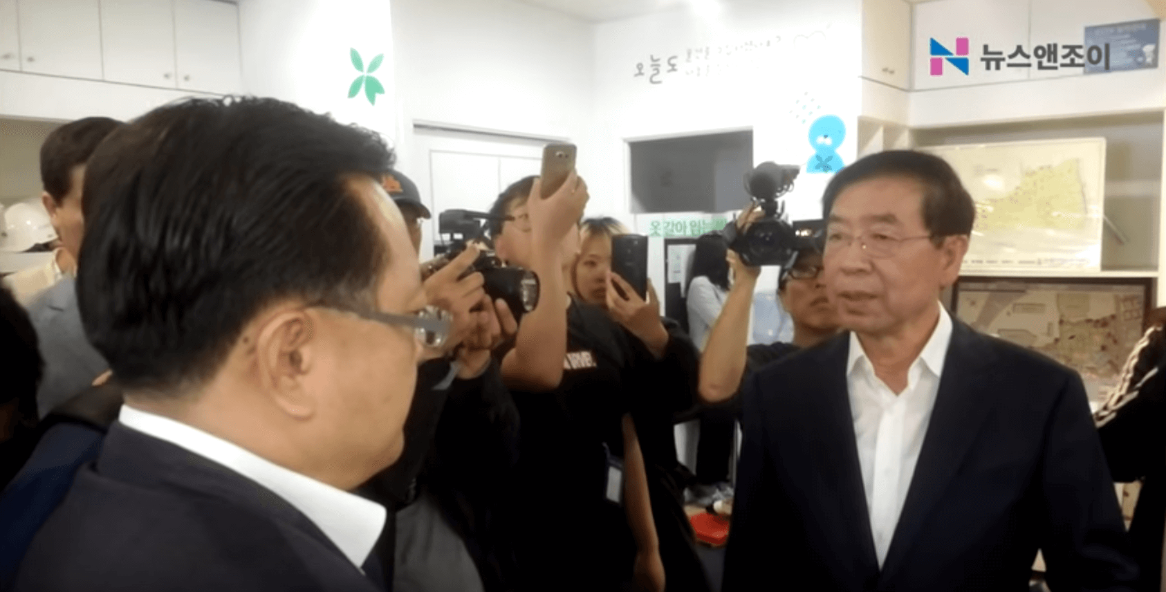 20分鐘後,首爾市都市開發局長來到現場。朴元淳公開指責道:「怎會有這種事呢?我不是跟他們約下午要見面嗎?但你們這樣做,一點禮數也沒有。」