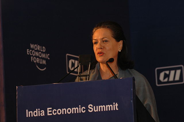 索妮雅‧甘地於1946年出生於義大利,在英國劍橋大學與英迪拉的兒子,日後的印度總理拉吉夫‧甘地(Rajiv Gandhi)結識、成婚後移居印度;為維護丈夫的仕途,索妮雅在1983年放棄義籍,轉入印度籍,並開始學習國語印地語(Hindi)。然而,在1991年拉吉夫遭塔米爾之虎(Liberation Tigers of Tamil Eelam)暗殺之前,她從未涉足政壇。一向由尼赫魯‧甘地家族領導的國大黨在失去家族唯一的男性繼承者之後陷入群龍無首的境地,於1996年的大選中慘敗,促使國大黨與其支持者要求索妮雅施以家族成員的身份出面領導國大黨。