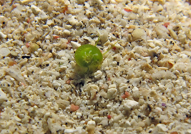 再者,太平島的島北跟島南有廣大的潮間帶,島北地勢較深,大退潮時水位甚至都還有腳踝到小腿肚的深度。島南地勢較淺,在大退潮時裸露面積較大。這樣不同的地形也醞釀出多種迷人的面貌:太平島潮間帶除了有珊瑚礁地形,也有水泥打造的硬底質,簡直是玉女蜑螺、白肋蜑螺、黑肋蜑螺、松螺、牡蠣等等貝殼生存的天堂。最重要的是有豐富的海草床,可以發現翠綠的翡翠蜑螺,雖然牠們的大小僅僅0.5公分,但是牠們翠綠的外殼令我深深的著迷,像是一顆又一顆晶瑩剔透的綠寶石,台灣本島早期在小琉球、墾丁有海草床的潮間帶皆可見其蹤影,可惜隨著海岸的開發,棲地受到破壞而看不到了,現在除了太平島,接著就是東沙島。海草床也可以看到造型特別的水字螺、駱駝螺等大型鳳凰螺科的貝殼,以及在岩縫中有大型的、具有共生藻可以光合作用的硨磲貝,這些都是在台灣本島逐漸消失的貝殼,或許太平島有強大的潛能能夠為台灣南部的螺類物種基因庫。