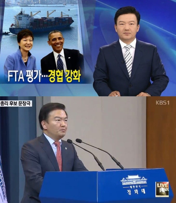 2014年,曾任KBS晚間新聞主播的閔庚旭,也被任命為青瓦台發言人,之後接受執政黨徵召,當選國會議員。閔庚旭在赴任青瓦台前一晚,還在晚間新聞中以文化部長的身分,在螢光幕前露面,解說時事。