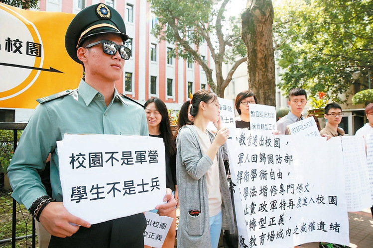 從教育部次長蔡清華公開表明「教官全面退出校園是新政府政策」來看,軍人駐校這項歷史業障即將塵埃落定。然而,歷史上每一個時刻都會有這種情形,只要有變革,就算是正面的總會有一群衛道人士跳出來大打「恐嚇牌」疾呼萬萬不可,從廢除髮禁到今日服儀解禁即可知。然而,這些保守大人的可怕預言卻從來都沒有實現過。校園一如往常,且更加開放自由。