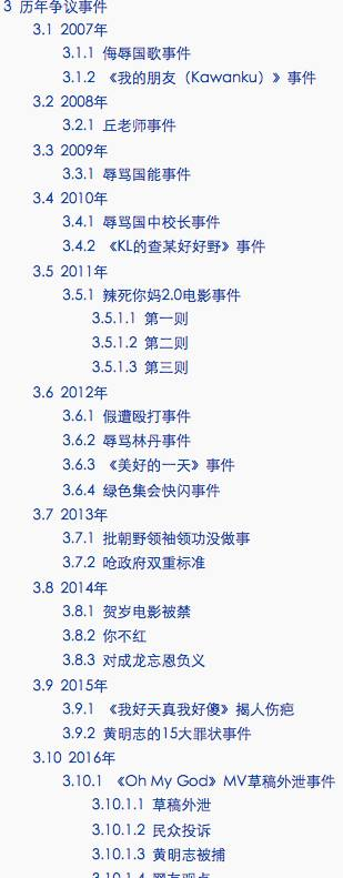 上圖是維基針對「黃明志」詞條解釋的目錄,其中「3.歷年爭議事件」尤其引人注目,占據目錄竟約八成篇幅,這也更令人好奇他為人?為何有如此爭議?爭議是單純白目,又或蓄意而為?目的為何?若我們進一步細看內容,能發現議題描述中,充斥「種族」、「文化」、「語言」、「官方」、「教育」等字眼;再對比黃明志赴台攻讀大眾傳播的求學背景,應能合理推測,他並非無意識的從事這些「爭議行為」;若該認知不差,他藉這些「爭議」想表達什麼呢?這是個人的態度,還是群體現象?要理解這點,必須回歸到他所處的社會背景。