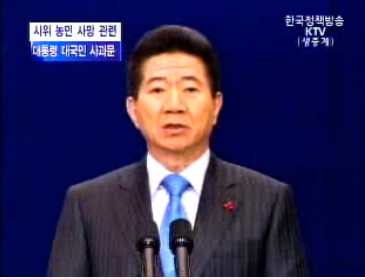 在進步派盧武鉉總統執政的2005年底,兩位上京參與反對國會批准米價協商集會的農民,在示威過程中,遭警方撞擊頭部與棍棒毆打而死亡,引發各界撻伐。