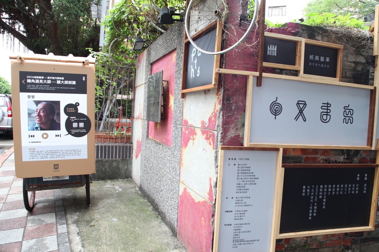 註1:書法店招活動從2014第一屆50間社區店家,到第二屆超過100家參與,足見文化認同感的擴散與蔓延。另外,由於城南藝事的舉辦喚起「城南聯線」,自2014年年底,紀州庵文學森林與上善人文基金會、國立臺北教育大學南海藝廊,串聯牯嶺街小劇場、唐青古物商行、奇異果文創、國語日報、基本書坊、財團法人客家文化基金會、中華文化總會、小兵出版社、微客棧、世紀當代舞團、台北市城南水岸文化協會、可口雜誌等單位成立「城南聯線」。希望可以透過活動資訊整合,建立台北城南的具體想像。並以每兩個月為單位,與聯線成員相互交流,亦發行電子報聯合宣傳。