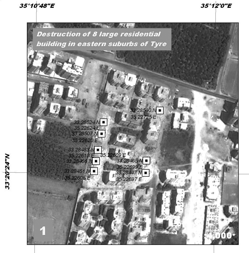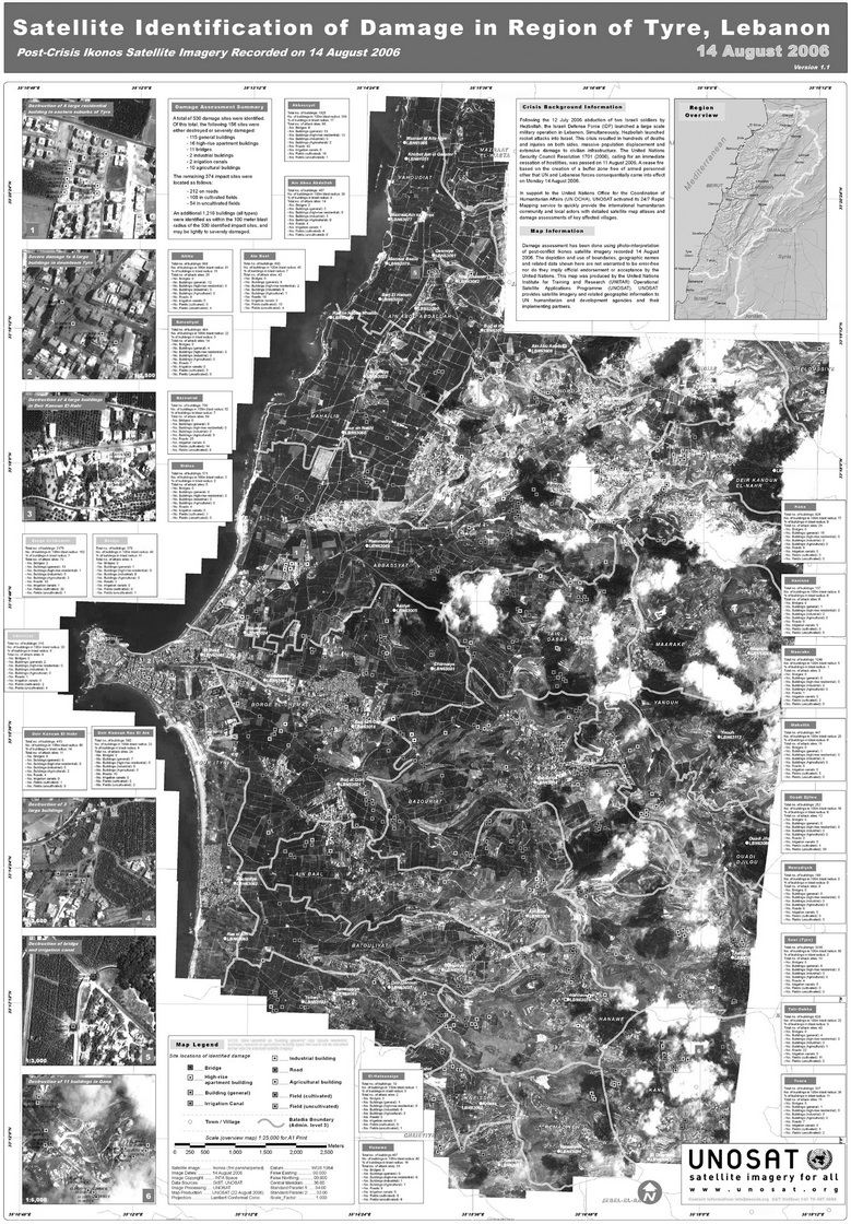 這些地圖(其中兩張是照片)為廣大的摧毀區提供了一幅「圖像」,但是幾乎無法解釋這些地區為何成為攻擊目標。它們具備戰略價值嗎?少了額外資訊,我們捧在手上的,就只是裝滿可能性的聚寶盆而已。我們可以從衛星偵查的細部地圖裡,看到米老鼠周圍有幾棟建築物被摧毀。那裡有家庭居住嗎?真主黨曾經占據那些房子嗎?倘若通訊社的照片都太過特定,這些衛星影像則太過籠統。