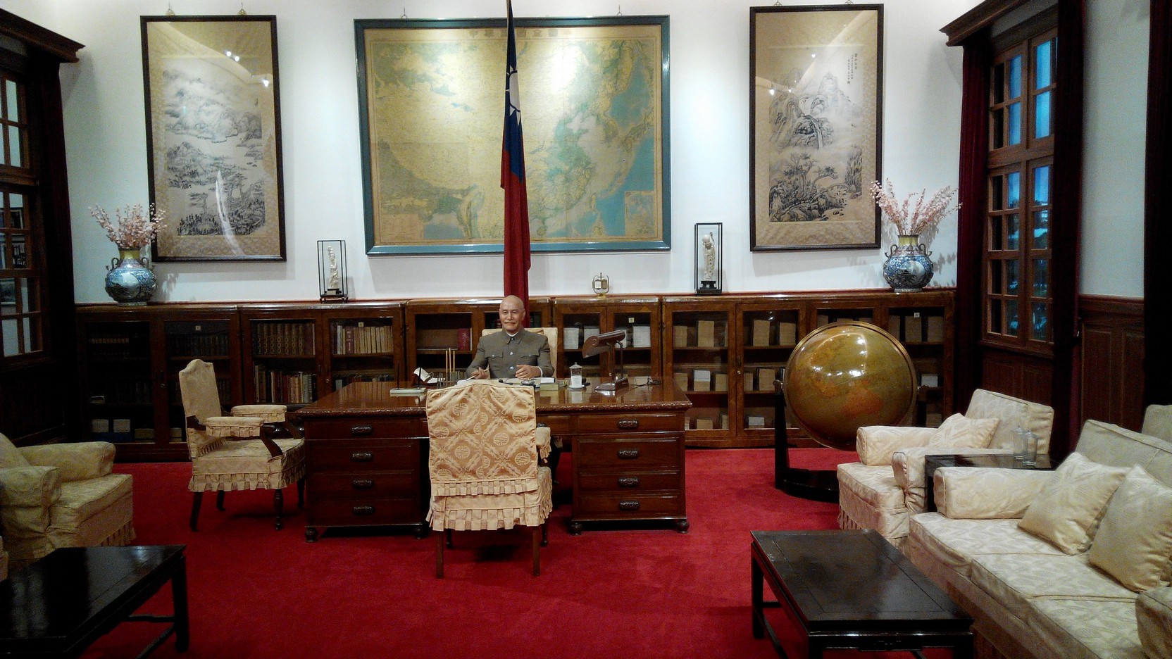 蔣中正毫無疑問要為戰後臺灣的白色恐怖負責,先不說什麼動員戡亂、戒嚴體制對人權所造成的侵害,光是蔣中正親筆定奪的政治案件就不知道有幾件,在他大筆一揮之下,有期徒刑、無期徒刑改為死刑的不知道有多少。而「有趣的是」展場中有一處空間特別騰出來,複製出當年蔣中正在總統府辦公室辦公的模樣,據一旁告示牌上的解說,為了重現當年的歷史原貌與空間氛圍,特別到總統府實地丈量空間尺寸。這樣的場景當然成為外國觀光客拍照背景的首選,相機手機拍照的咖擦咖擦聲此起彼落,但有哪位觀光客知道當年蔣中正就是在這個空間,在這張桌上,坐在那張椅子上,拿起那支慣用的紅筆,把部屬送上來的政治案件判決書大筆一揮改成「死刑可也」?觀光客在拍照的同時,又何嘗知道這個空間對於政治受難者而言是難以言喻的苦難場域?還原蔣中正的真實樣貌,難道不該是功過並陳嗎?一個兼具教育意義的展示空間可以如此偏頗地呈現歷史嗎?