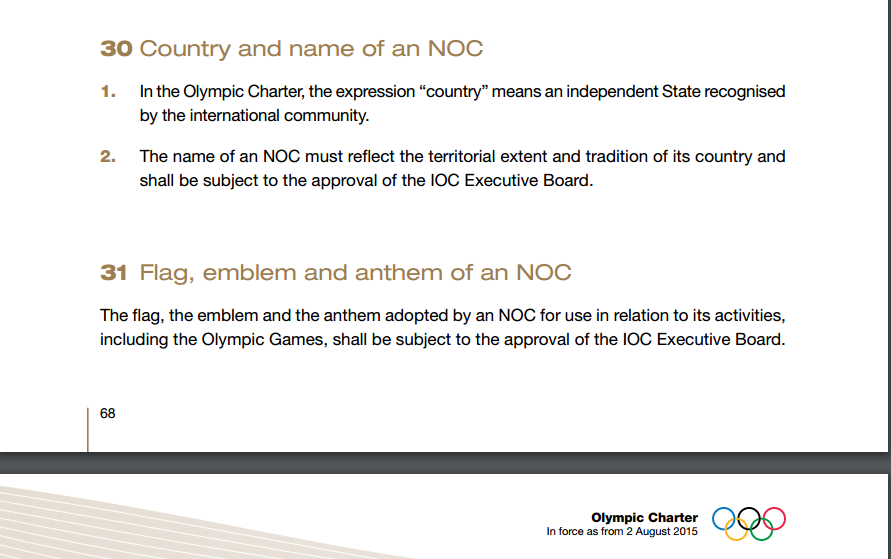1. In the Olympic Charter, the expression “country” means an independent State recognised by the international community.