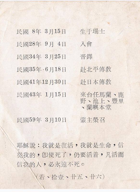 除了積極培育孩子,他也協助婦女職業訓練,在他來到蘭嶼16年後的某日,他親自帶著三位原住民婦女北上學習家政技藝,不料卻遇上車禍死劫,結束他在台灣的奉獻腳蹤。