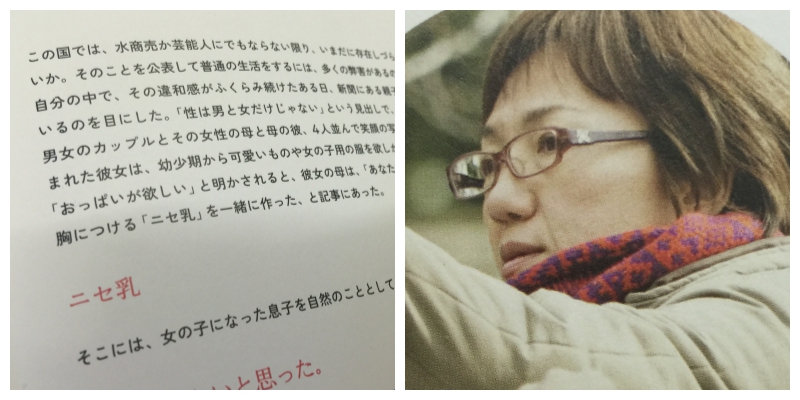 我坐在平日傍晚卻幾乎滿場的日本電影院中,觀賞這部電影。左手邊的座位,坐著一位四、五十歲年紀的上班族,我覺得自己運氣挺好的,因為如果我要寫這篇文章,恰巧這位爸爸可以給我當作寫作素材,所以我一邊看著電影劇情,一邊留意著他的反應。在一些凜子還是男兒身時的女性舉止描繪時,他有些不自然地笑著,但隨著劇情的推移,看著凜子壓抑的悲傷與不平的處境,他開始吸鼻子,然後輕聲而壓抑地嘆息,燈光一亮時,他抹了抹臉,快速地步出電影院,我始終沒有跟他搭上話,不知道他是否在某個環節被感動了,永遠不會有答案,但我相信這部電影,必然在這位上班族爸爸的心中起了某些化學變化,於從笑轉淚之間,某些念頭與同理的契機有可能就生成了。