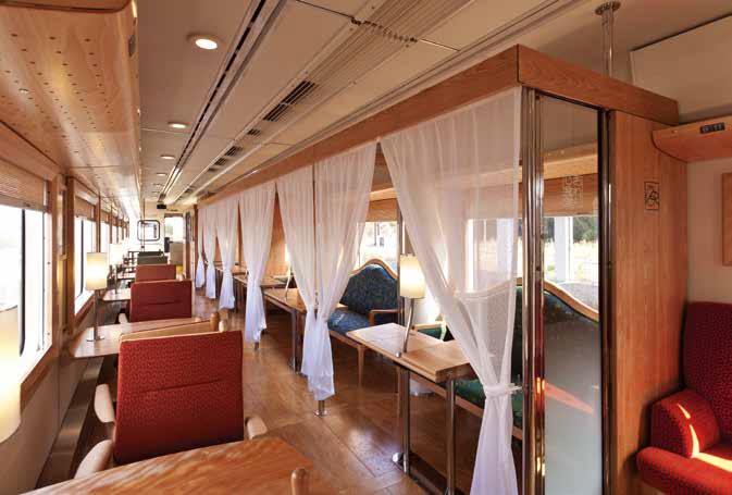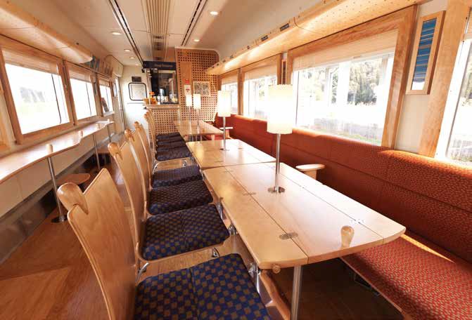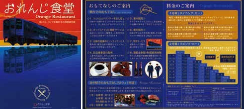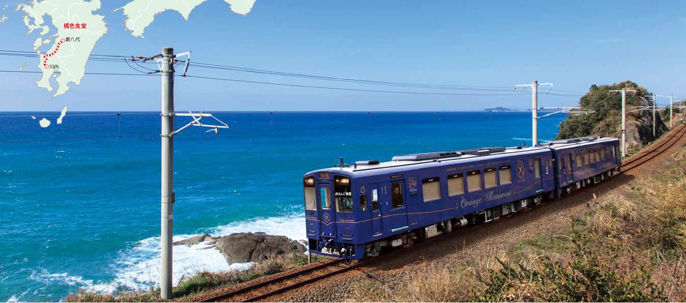 據說當初是因過耗經費,不敷預算所致,因此新幹線捨去了餐飲車廂;然而曾是營收赤字的地方鐵道,卻是因為「行駛的餐廳」而大獲成功。肥薩橘色鐵道始於2013 年3 月,是名為「橘色食堂」的觀光列車,在餐廳裝潢的車廂內提供餐飲服務。