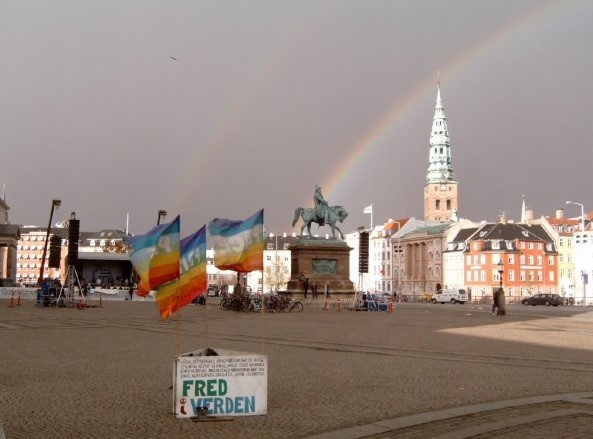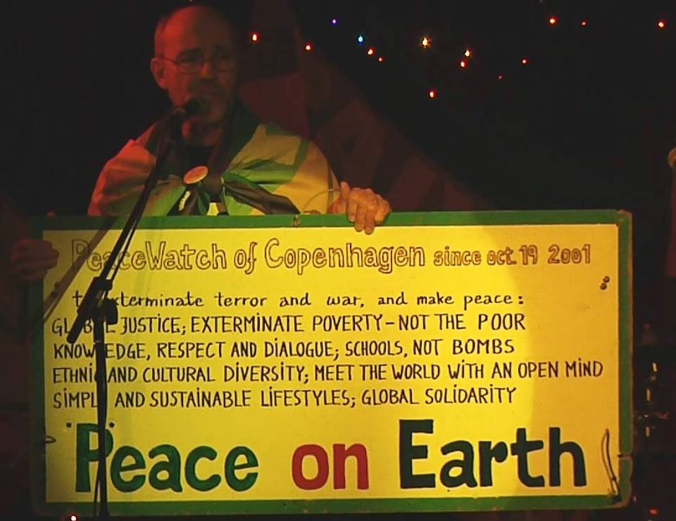 「The peace watch」鑒於美國入侵阿富汗後,丹麥一直傾向支持武裝行動,自2001年10月開始,在國會大廈(Christiansborg Palace)的廣場前,矗立反戰標語與旗幟,對無國界的地球公民,宣揚戰爭就是恐怖行動。軍事進攻是強權慣常的不人道行為,同時為了獲取利益使得全世界遭受毀滅的打擊,當特別的利益在通過需要極端暴力的戰爭來「保衛」之時,很多人就會被剝奪安全以致喪失生命。「The peace watch」認為暴力將引起暴力;仇恨將產生更多仇恨。