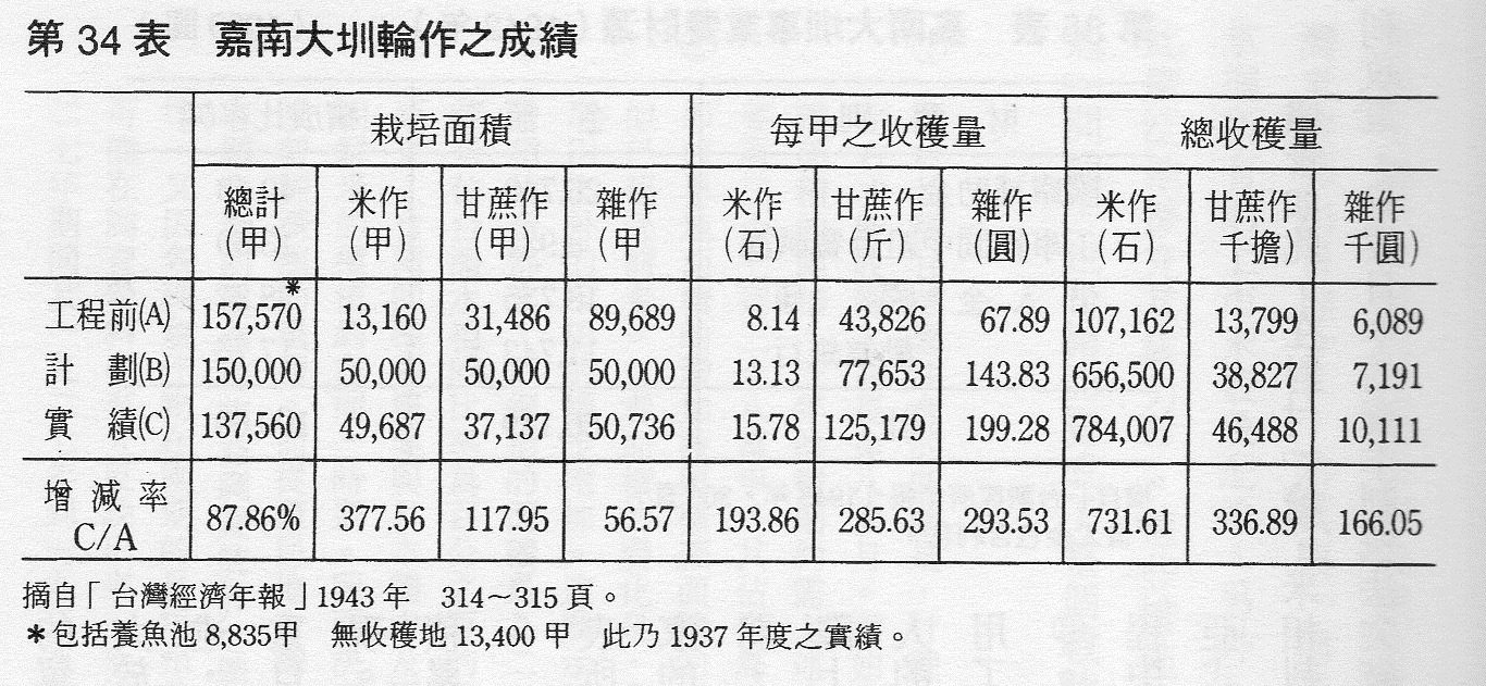 但後來嘉南大圳在1930年蓋好之後,農民並不如矢內原忠雄預期那樣被會社綁架。原因在柯志明《米糖相剋》這本書裡面有分析,因為日本人沒辦法壟斷土地、無法用熱帶農場的方式指定農民生產甘蔗。加上台灣家庭式農場很能自我剝削,生產成本超低,所以台灣農民還是可以在日本人不斷壓低糧價的情形之下,繼續生產廉價蓬萊米。