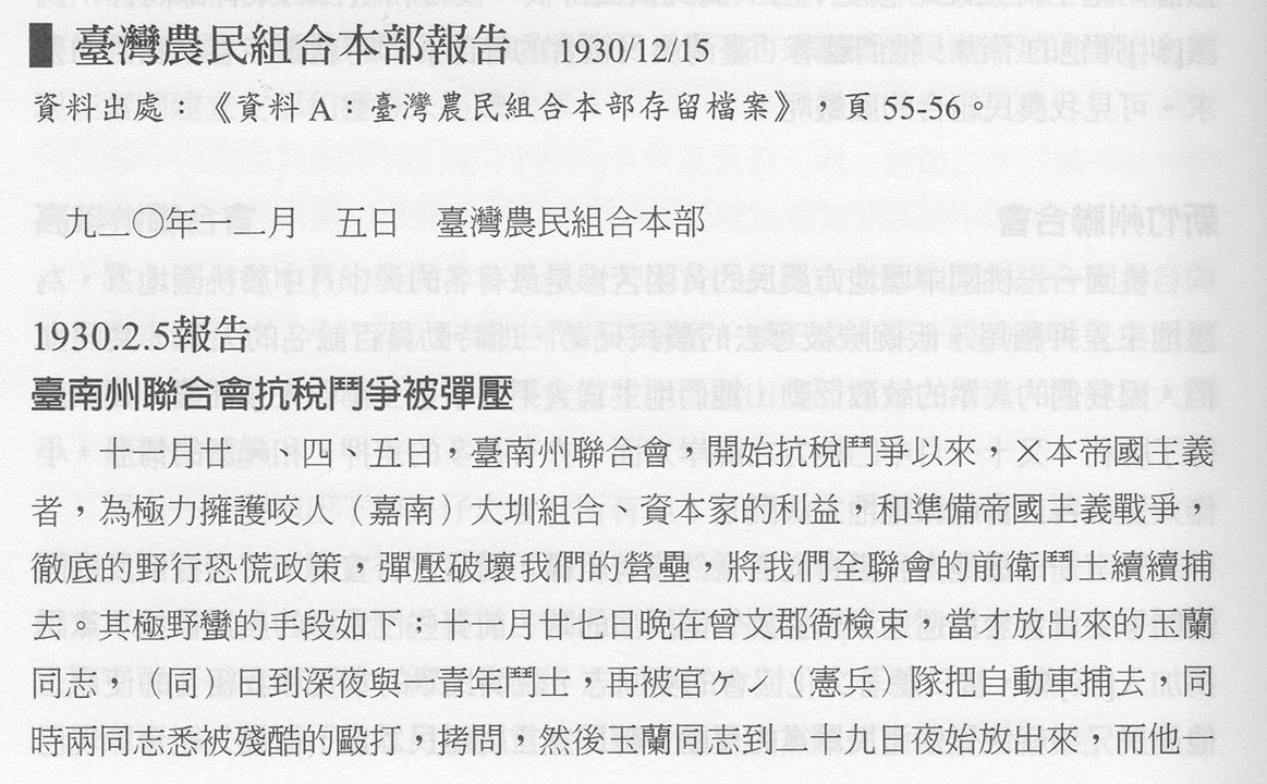 下列這幾則筆記,顯示出了當時幾名幹部被憲兵帶走之後,被殘酷地刑求、虐待。而繳不出水租的「水租滯納關係者」,將近數十甲的土地,則在12月5日當天,在層層的警力戒護下,被台南州稅務局拍賣出去。