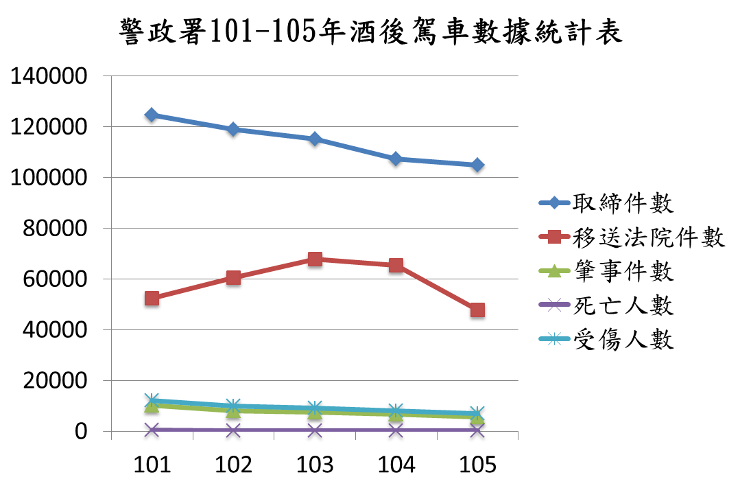 為什麼特別強調「又」呢?近年來,酒駕造成的人命傷亡層出不窮,幾乎天天都能看到媒體報導。而這些用悲慘血淚換來的數字會說話,根據內政部警政署、交通部統計近五年(101至105年)酒後駕車各項數據顯示,酒後駕車有以下四項特點值得社會各界嚴肅看待: