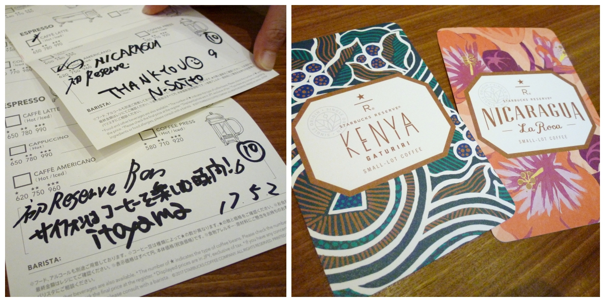 還記得前面提到的,那張記錄下豆類與烹調選擇的咖啡單嗎?咖啡師會摺成三折,在最後交給你。咖啡單會寫上這次的搭配(還畫上了世界地圖以讓你知道咖啡豆的產地在哪個方位),咖啡師給你的訊息(雖然大部分都只會寫Thank you),日期、你的名字與咖啡師的名字,讓你可以帶回家留念,像是邀請函,也像證明狀,記錄點滴令人回味起來更有憑據。