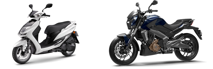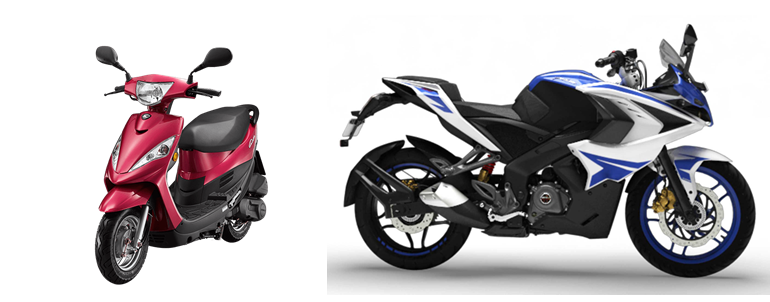 說實在話,以Kymco Cue 100來代表台灣二輪車市場並不是很公平;這種買菜取向的車款自然在性能、品質上無法與旗艦車款相提並論。在台灣的速克達市場極具代表性的山葉新新勁戰(Yamaha Cygnus X)當堪扛下以旗艦對抗旗艦的重任。新新勁戰,儘管引擎性能不是同級車種第一,但是其車體設計優良、穩定性佳,擁有同級車種最好的騎乘感,並擁有快速、穩定傾倒的靈活性。以目前在網路上看到的報價,新新勁戰一台要價新台幣82,000元。且讓我們來看這筆金額能在印度買到什麼樣的摩托車。