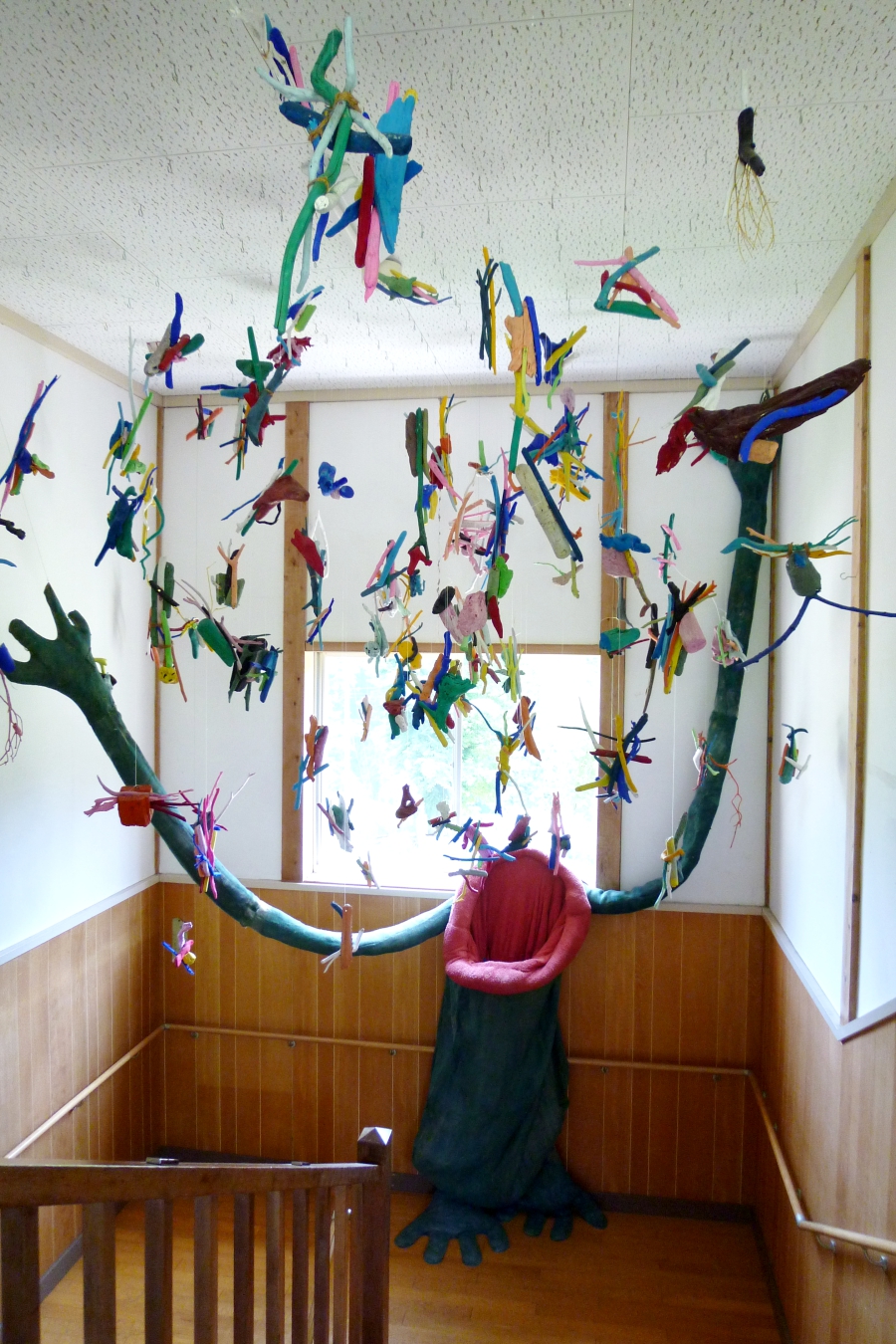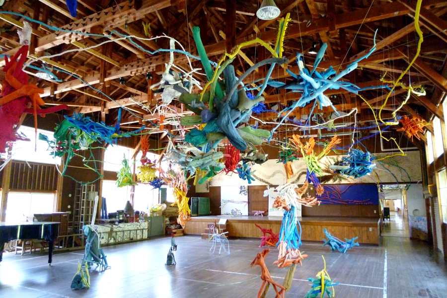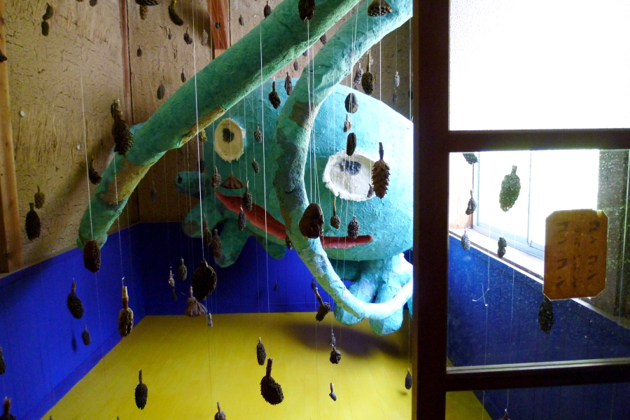 運用大自然的材料,如樹葉、木枝、果實、花卉等,打造出一座立體繪本,是田島征三充滿著想像力、奠基於實踐力的空間設計手腕,在製作過程中,也請當地的爺爺奶奶一塊幫忙製作,如今負責管理的一些工作人員,也是該校的畢業生,緣分雖然曾經中斷,卻也強韌地延續下來。藝術祭最常碰到的問題,大概就是在地居民對於外地藝術家的不解與排斥了,但外地藝術家從在地故事中發掘出創意,在地居民透過參與而對藝術品本身產生感情,透過這些了解與實際接觸,那些參觀者沒看見的暖心故事,其實還有太多太多。