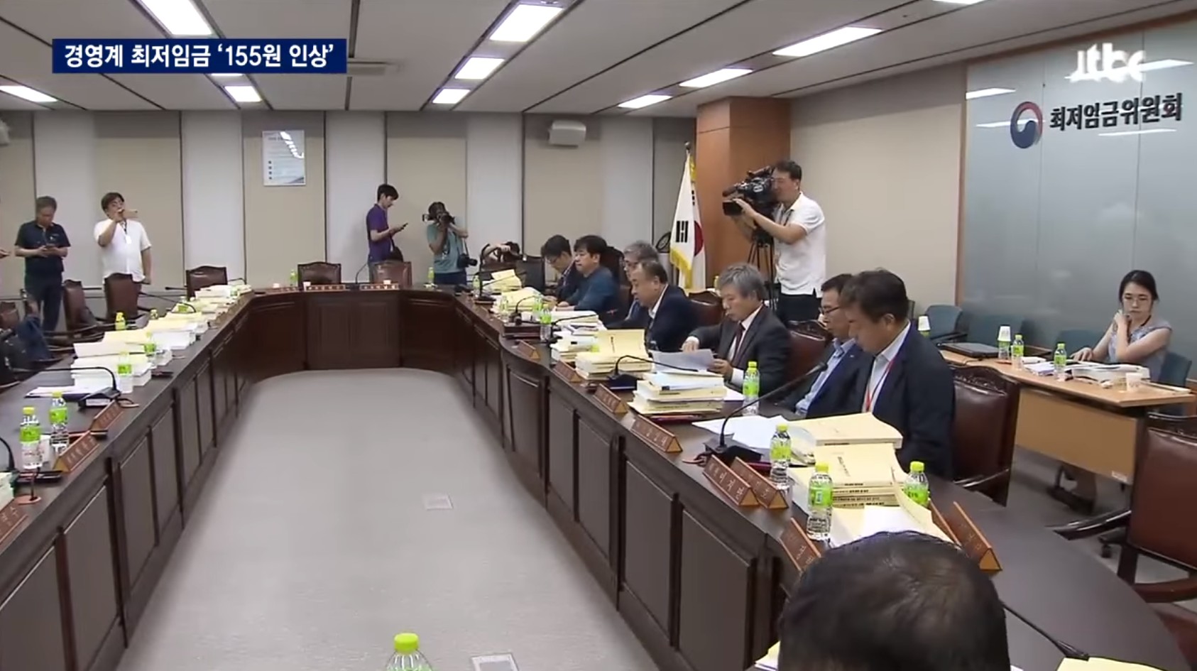 去年,南韓最低薪資委員會將最低時薪從6030韓元(新台幣172元)調漲到6470韓元(新台幣185元)。下次時薪要調整為多少、根據什麼準則和變動來做變化,由勞工(兩大工會)、雇用者(工商總會;資方)與公益(政府提名任命)代表各9人,共27人組成最低薪資委員會,依舊無法達成共識,而陷入僵局。