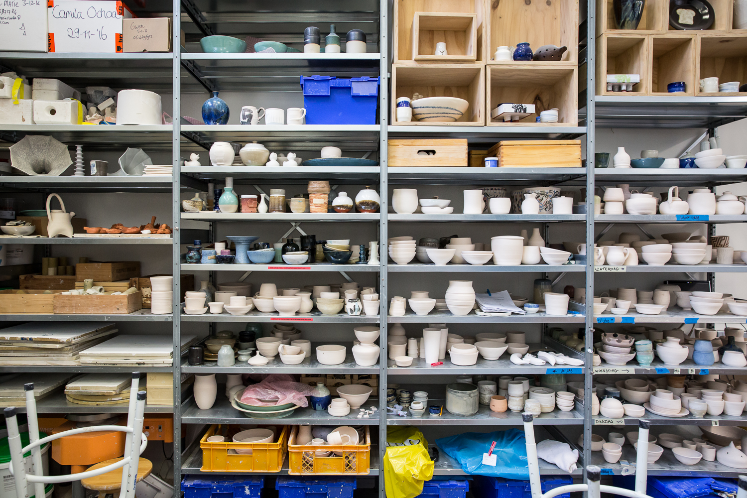 照著相約的地址,來到陶藝工坊Atelier Werfklei的所在地,一間過去曾為某藥廠的倉儲中心,繞了好幾圈、開了好幾扇門、經過了幾間不同陶藝工坊,終於在最底部的角落與Reinier相見。一問之下,才知道原來這裡有六十幾家小型公司,承租空間拿來當辦公室、工作坊等用途,看得令人眼花撩亂,不過生氣倒是十足,好似某些新創中心。