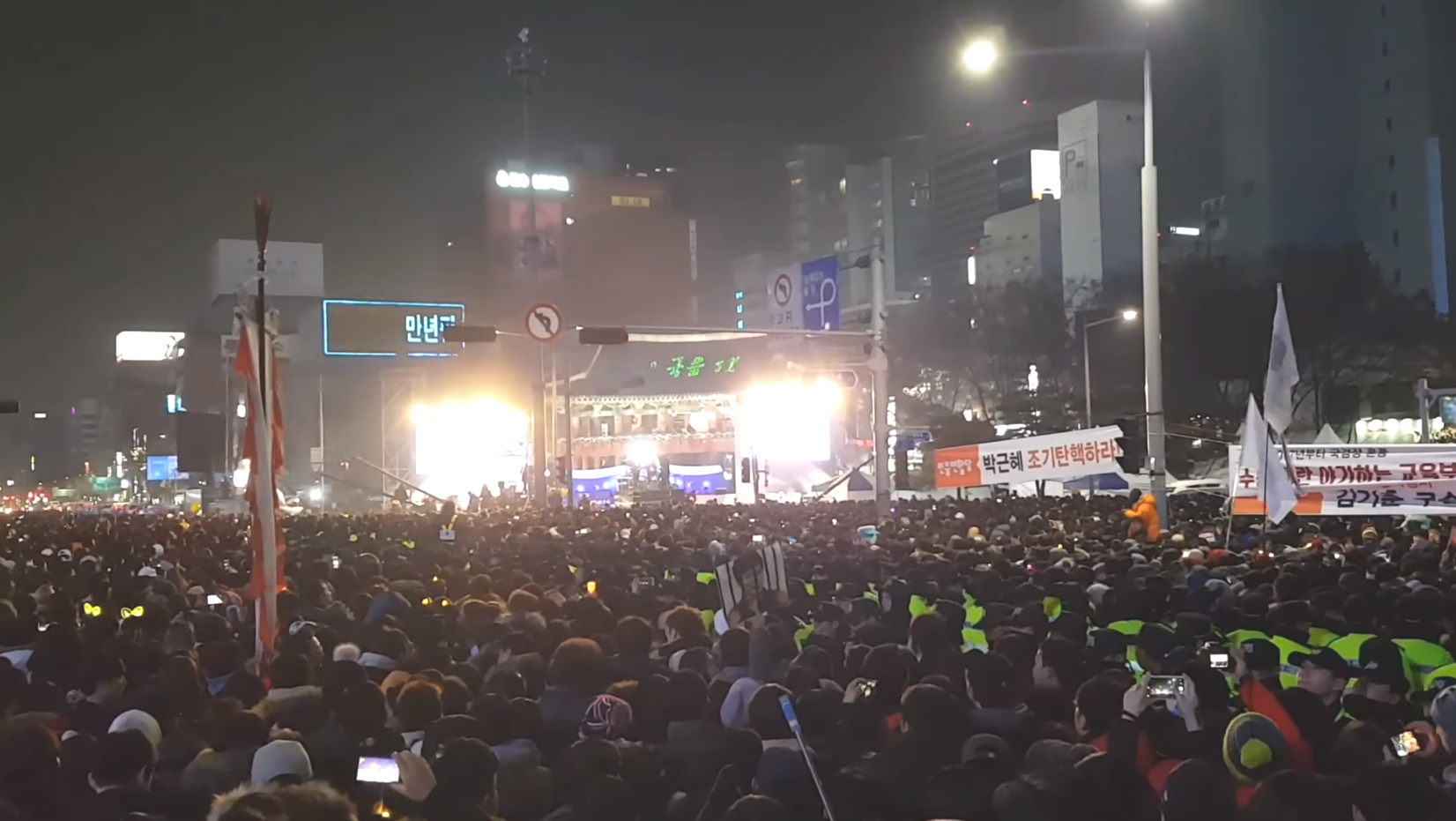 當年12月31日,KBS直播首爾市中心普信閣的跨年夜敲鐘,附近正好也有市民團體舉行年末批判政府的集會活動,參與的人數也持續增加。