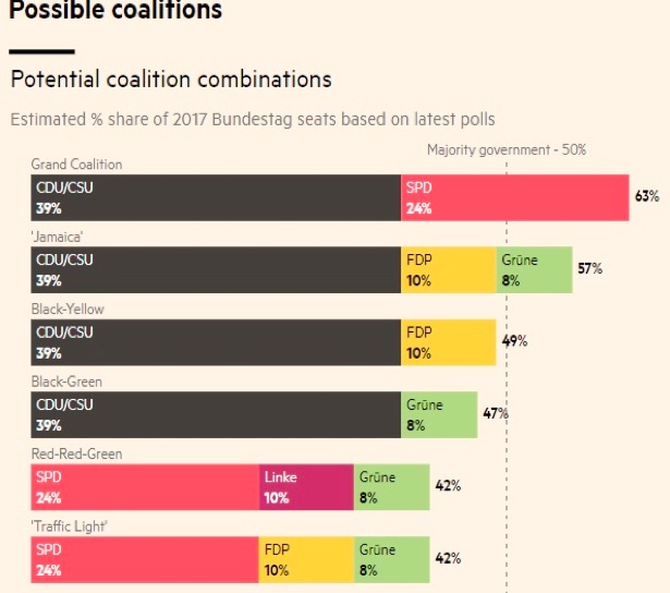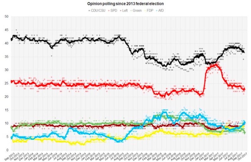 社民黨(SPD)一度被認為有機會取代聯盟黨,但社民黨(SPD)過去四年作為聯合政府的一員,總理梅克爾在政策上飽受批評之處,同為「執政黨」之一的社民黨難辭其咎;此外,舒爾茨籲求邊境完全開放、歐盟各國必須一同負責接納難民,以及凍結土耳其加入歐盟等政見,事實上都是歐洲議會可接受的彈性做法。如同英國脫歐仍會是歐盟經貿重要夥伴一般,土耳其即使不是歐盟會員國,歐盟早已定義土耳其為東部夥伴的基調並未改變,舒爾茨的主要政見顯得老調重彈。另外,即使舒爾茨相當重視中產階級與勞工,但社會底層人口對經濟成長的無感,轉而支持左翼黨(Die Linke/The Left)或是極右翼德國另類選擇黨(AfD),都是社民黨無法撼動梅克爾的原因。