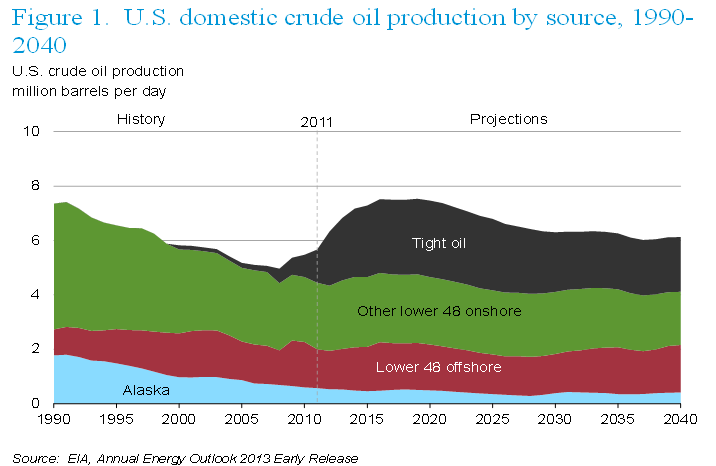 受到頁岩油、氣大量生產,以及美國其他能源政策的影響,美國進口能源佔美國總能源需求的比例直線下降,2007年還佔29%,2011年只佔19%,EIA預估到2040年將僅佔9%,此外,頁岩氣將使美國自2016年起就成為天然氣出口國。美國即將從能源進口大國轉變成為能源自給國,甚至成為能源輸出國。