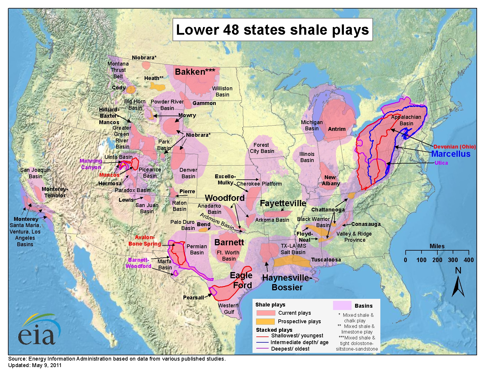 整個美國中西部在恐龍時代都是一片淺海,後來才浮上來成為陸地,可以想像整片美國中西部擁有大量的含油與含天然氣頁岩分布,在應用開採新技術後,首先開創了天然氣的新紀元,美國的天然氣降到難以致信的新低價位,產業界稱之為「天然氣爆發」、「天然氣革命」,這股天然氣就被稱為「頁岩氣」。