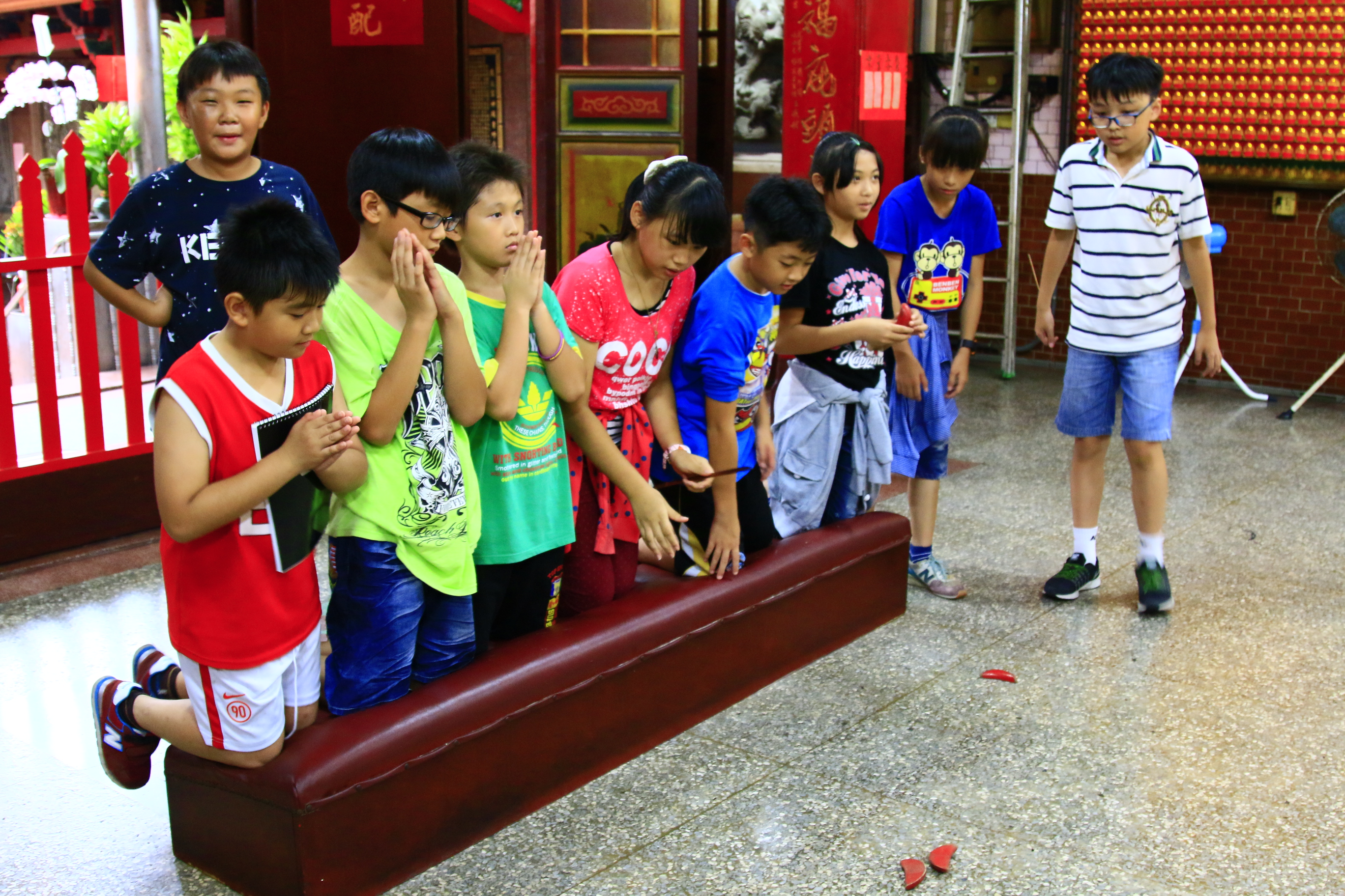 大部分孩子,比較有到廟裡拜拜的生活經驗,但是關於跟神明「博杯」(擲筊)抽籤這件事,卻是很少有的體驗,因為不是每個大人帶小孩去廟裡,都願意讓小孩嘗試去做這件事,而且跟神明「博杯」抽籤,對大人來說是慎重的事,大部份是因為發生了什麼生活上的困惑,所以才會來跟神明求籤請示。不過,在我多次帶孩子到廟裡參觀的經驗,孩子對於「博杯」抽籤特別有興趣,而讓孩子體驗這項宗教行為,總是會有讓人驚喜的事發生。