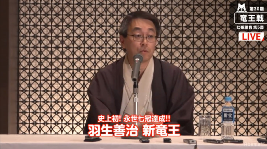 2017年12月5日,日本將棋界再度發生劃時代大事件。羽生善治繼過去完成獨佔七大頭銜的壯舉,正式在這一天奪取龍王頭銜,達成史無前例的「永世七冠」偉業。