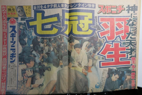 但其實更早之前,同樣掀起熱潮的前輩正是羽生善治。1996年羽生善治奪取王將頭銜,獨佔了當時七座頭銜位,成為所有主流報社的頭版報導。此後羽生善治靠一己之力,以將棋界明星的身分,不懈怠於任何棋賽,並隨時吸收最新型態的戰術融入棋賽,讓將棋始終不因時代演進而顯得陳舊。羽生不僅在衛冕者以逸待勞等待挑戰者的頭銜戰,在每次都需要從預賽起步的NHK盃賽中,都獲得10次優勝,得到名譽NHK選手權者的資格,可說是從超快棋到超慢棋,都證實了他無與倫比的宰制地位,被譽為「天才中的天才中的天才」。