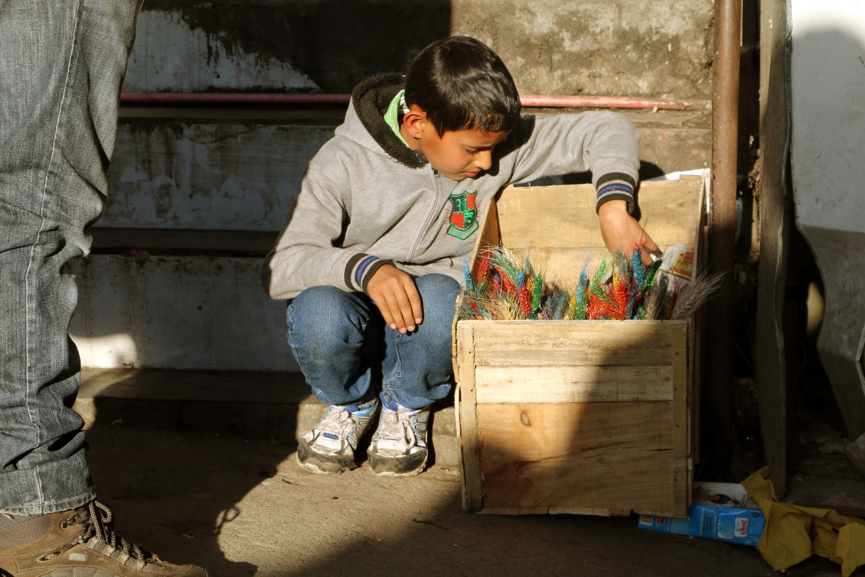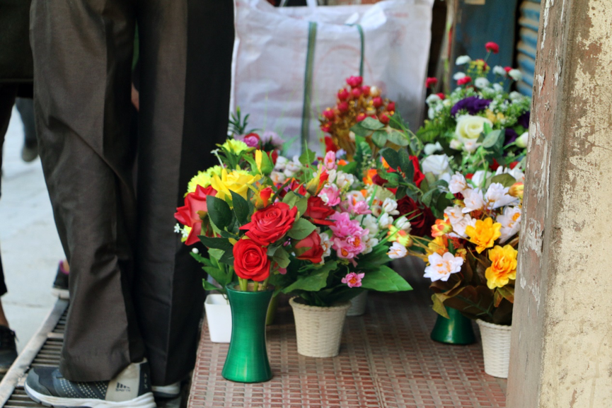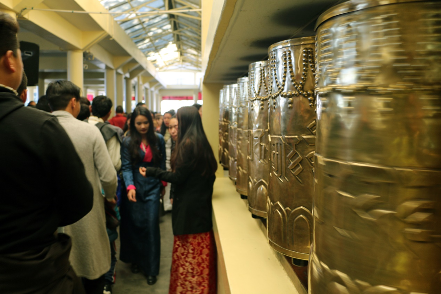 步入公務員宿舍建築群當中,隨意挑一條小徑繼續向上步行,所有小徑都通往山上的廣場。廣場附近匯聚了計程車招呼站、各式非政府組織辦公室、教育機構、旅館與商店。今天是藏歷火鳥年的第一天,大部分藏人一早便前往大昭寺參拜,藏人經營的店家多半放下鐵門迎接美好的年節,街道上僅剩零星的雜貨店尚在營業,沿路隨處可見販售酥油花與年節飾品的小販。