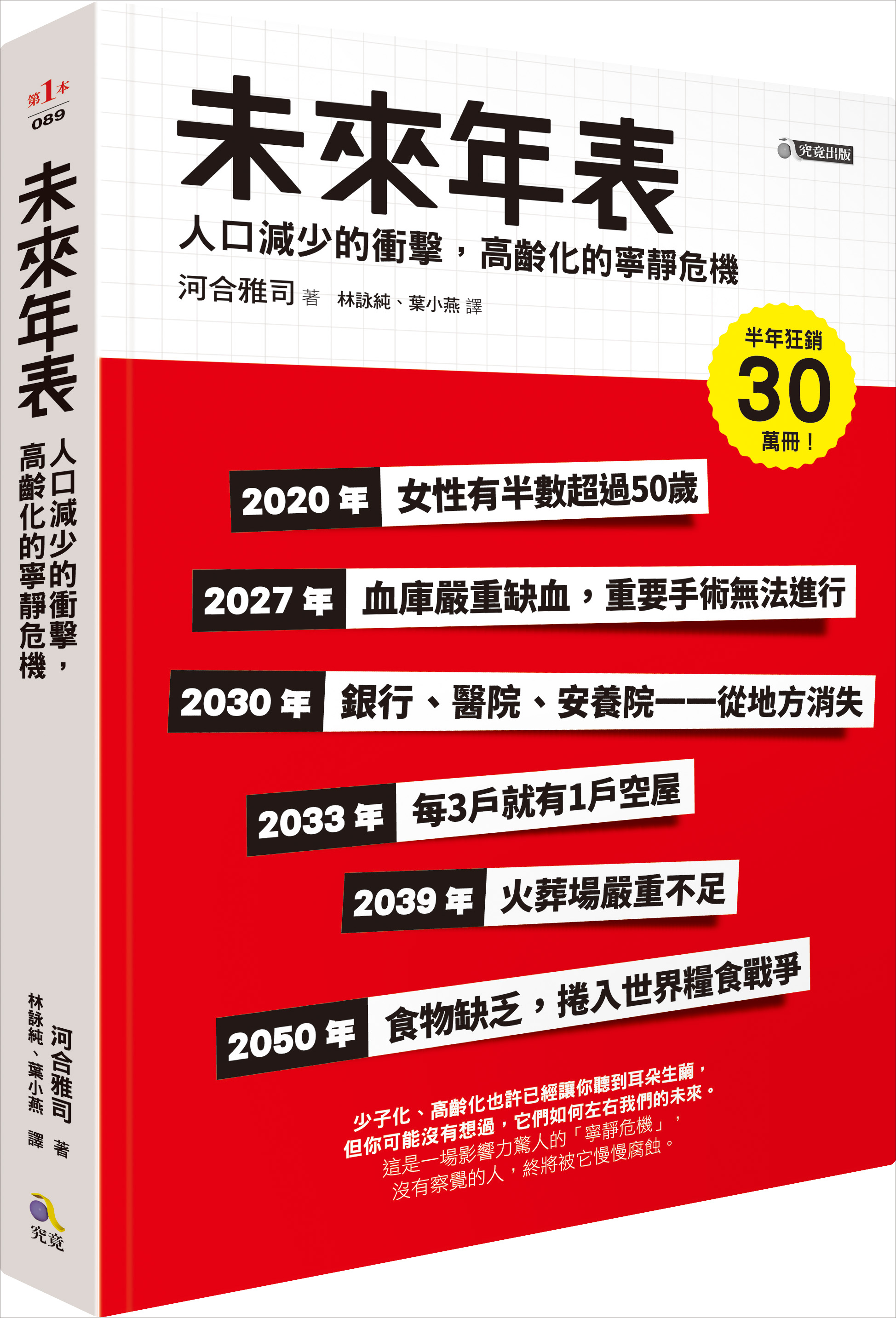 老化是臺灣未來40年最重要的政治、社會與經濟變遷因素。以目前臺灣政府治理失能的程度,可預見的是與老化相關的服務,將通過商品化的市場服務與民眾的自力救濟來提供,這將進一步導致福利供給的「社會階層化」。現在30歲以下的年輕人終生將籠罩在老化的幽靈之下,這一困境也將成為臺灣未來40年的政治、社會與經濟的衝突來源。至於要了解有哪些可能的衝突場景,就先來讀讀《未來年表》這本書吧!