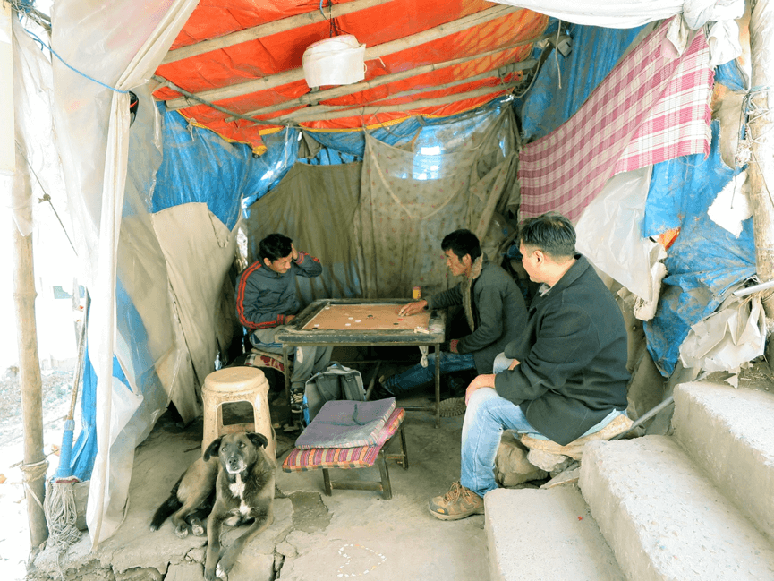 尼瑪是唯一居住在Villa裡的女性。白日尼瑪在山城廣場附近工作,幫NGO組織剪裁織品;晚上回家,再接些裁縫活賺點零錢。長期低頭勞動讓尼瑪的脊椎出了點小毛病,天冷的日子總得圍上厚厚地護腰、護腰外再綁上毛呢布裙。尼瑪有雙清澈的大眼,生得得極為瘦小,四十歲的女人胳膊一伸,僅比十二三歲的女孩再長上那麼一點。因為長年胃病的關係,食慾不佳的尼瑪家中慣常只準備蔬菜與糌吧。