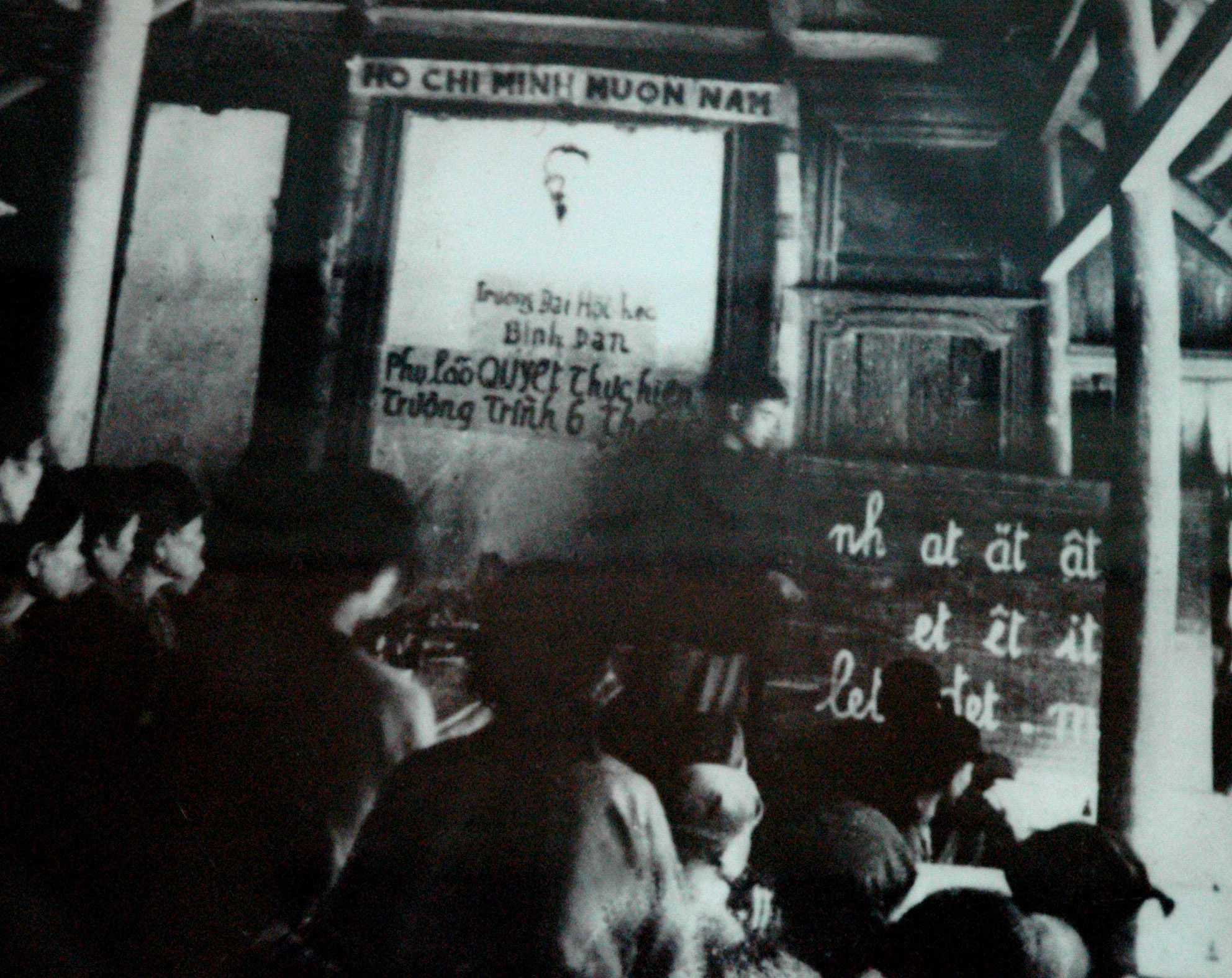 除了以軍事及政治手段爭取越南的獨立之外,胡志明還透過文化與教育的手段培養越南民族意識以作為抵抗外來統治的文化防線。譬如,胡志明於 1945年9月2日宣布成立「越南民主共和國」後,新政府在 9月8日又立即宣佈廢除漢字與法文,全面推行改用羅馬字的教育政策。事實上,在胡志明建立政權之前,他對文化建國的觀念已相當清楚。他本身也實踐用越南羅馬字(在越南稱為「國語字」chữ Quốc ngữ)寫作與教學的習慣。他絕不會推拖說等到建立本土政權後再來處理語言與文化議題。