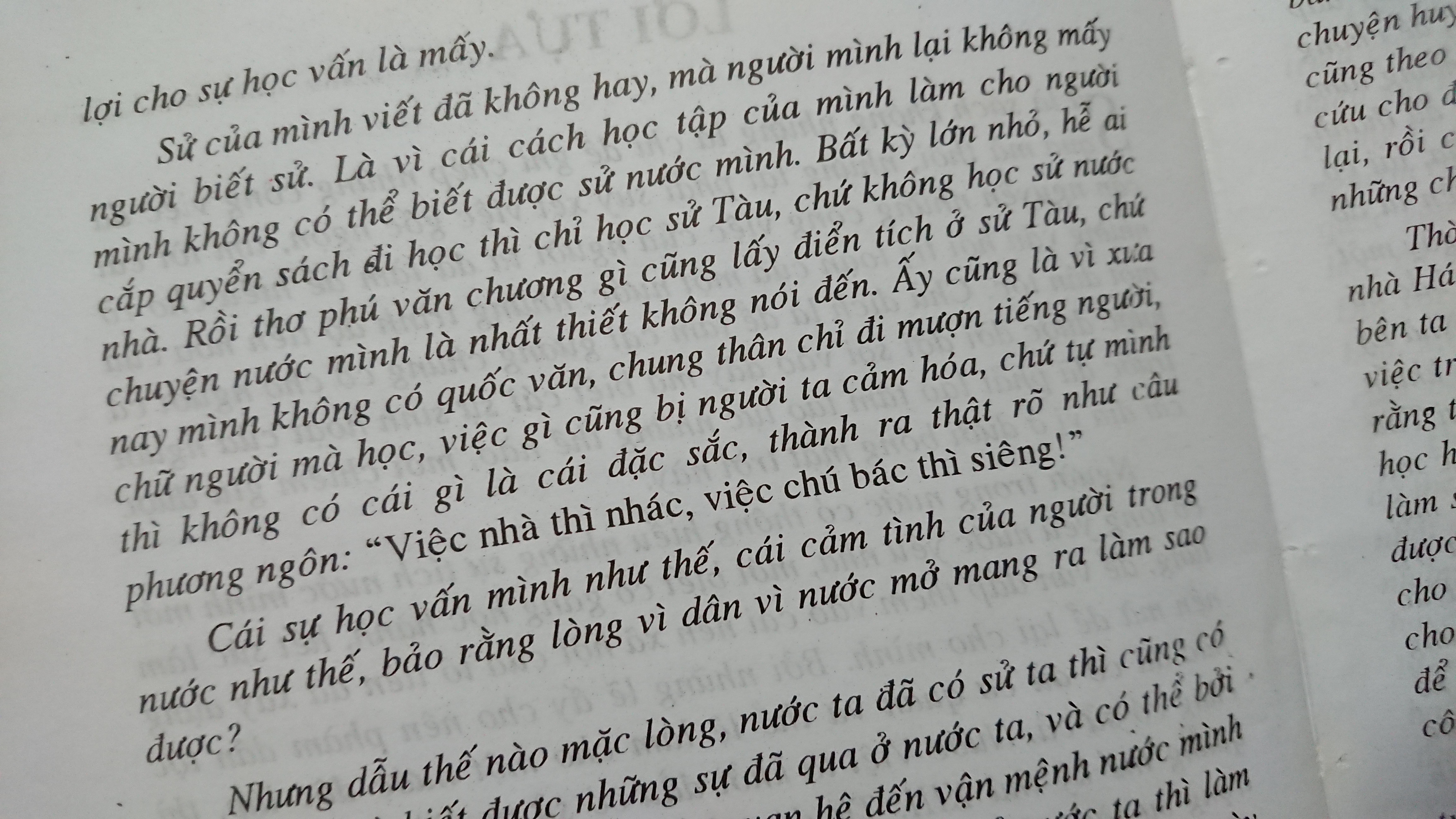 越南有名的歷史學家「陳重金」(Trần Trọng Kim 1882-1953)於他的名著《越南史略》(Việt Nam Sử Lược)序言裡曾感慨封建時期的越南社會:「不管大人、小孩,去到學校學的都非越南史,只學中國史。詩賦文章也都取材字中國、一切都參照中國價值觀…」。