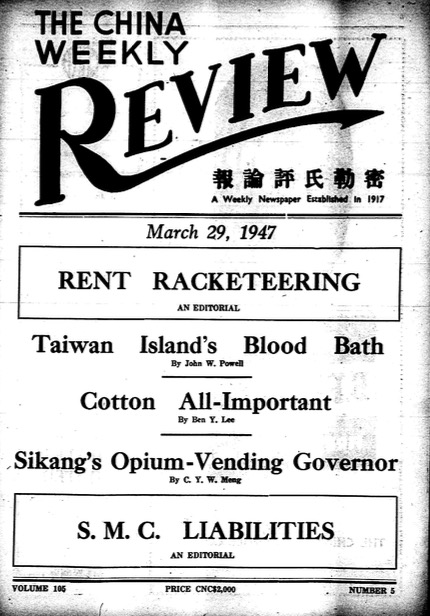 原文:”An Executive Account of Taiwan’s Blood Bath As Detailed by Eyewitnesses”, The China Weekly Review, Volume 105, Number 5, PP 115-117.   March 29, 1947.
