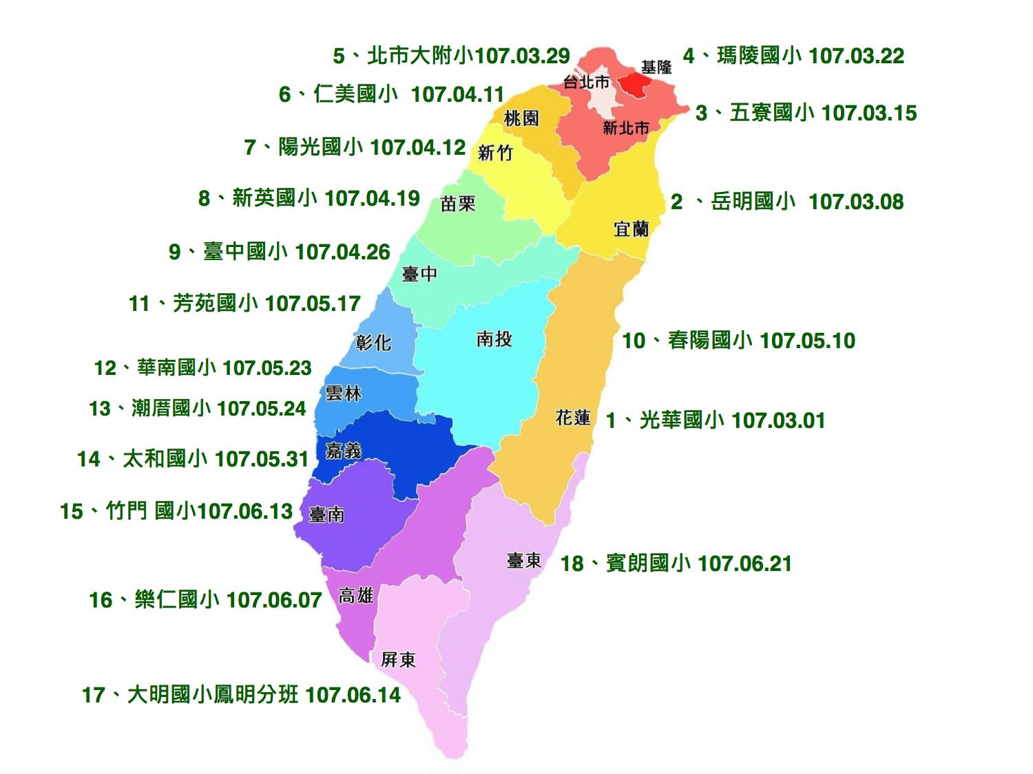 「阿比野菜環島學校」18所,行前拍攝紀錄的影片,秀娟老師也有分享在她自己的臉書上,可以在以下網址上看到:https://www.facebook.com/wu611003/posts/10213284710169552?pnref=story