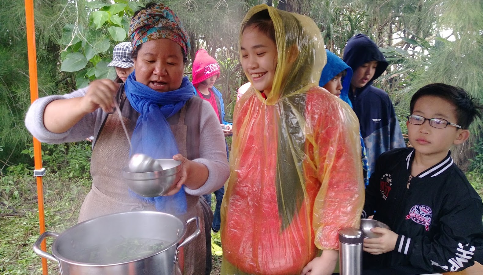 3月8日,阿比野菜環島來到第二站,宜蘭的岳明國小,廚師志工清晨五點就從台北開著車子前往學校,七點半與學校老師及幾位早到的孩子,到海邊進行場地佈置,因為當天陰涼風大,實在無法在海邊進行野宴,孩子原本很失望,但最後大家改成在海岸旁的防風林進行,廚師志工Nicolas Chang紀錄著: