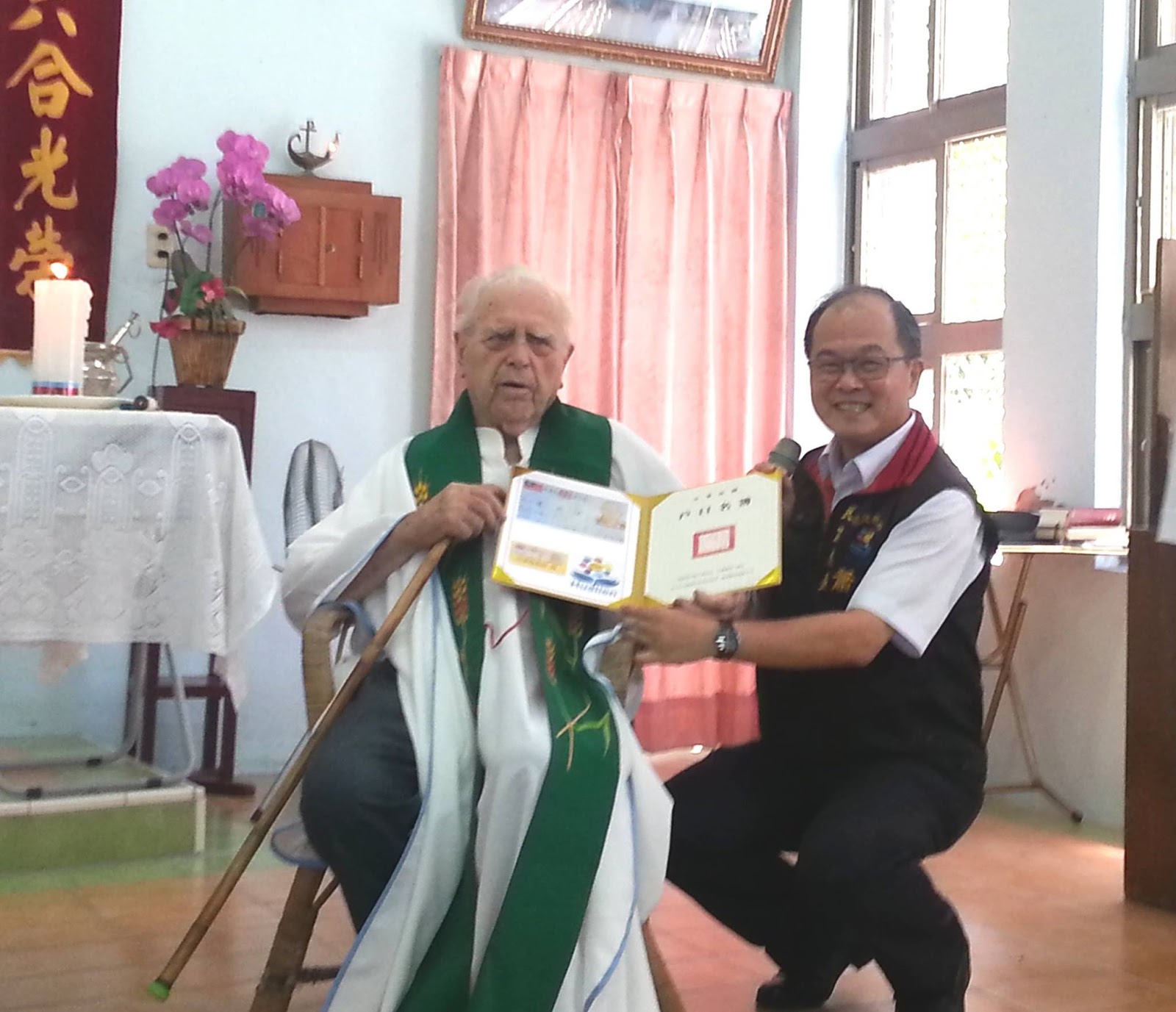 拿到台灣身分證的那一天,洽是潘神父的85歲生日。神父說,花蓮已經是他的家,他的家人就是當地阿美族人,他終於跟部落的家人一樣是台灣人了,他希望在台灣這塊土地安養天年,想葬在這裡。