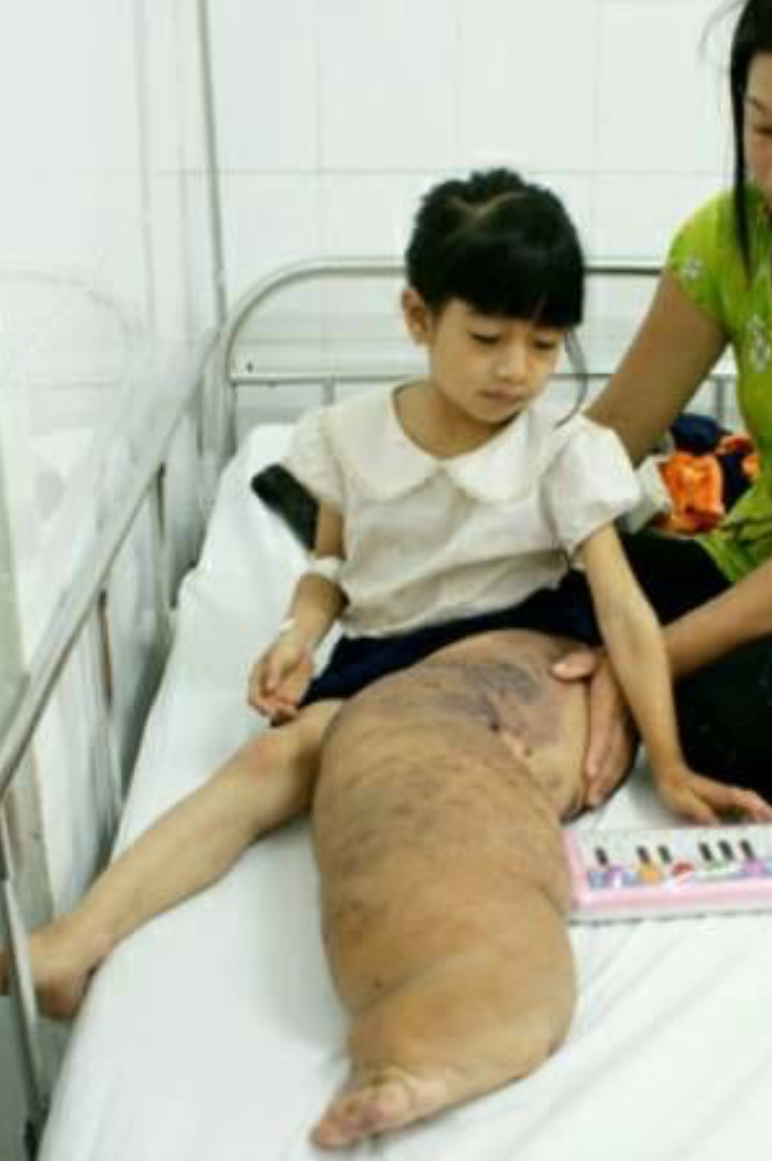 大家都叫她阿巒,她出生就和一般小孩不一樣。六個月大時,阿巒的爸爸媽媽曾帶她到胡志明市兒童醫院就醫,確診為先天性下肢淋巴血管瘤,阿巒曾吃藥治療,也曾開刀手術,但是都不盡理想,病況卻是每況愈下。