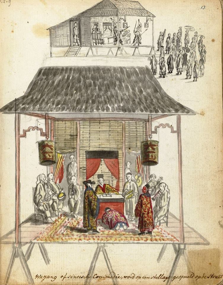 根據荷蘭史料,各式演戲(speelen)也寫作wayangen。wayang一詞可能是與印尼相似的皮猴戲,或者是迄今仍可看到的布袋戲(印尼文叫:Wayang Potehi)有關。只不過,荷蘭文獻提到漢人戲劇時,通常指人物飾演角色的大戲(歌仔戲)。