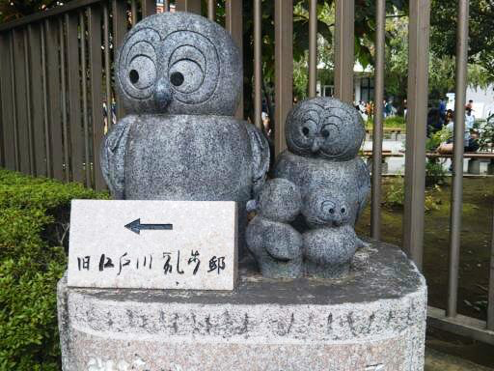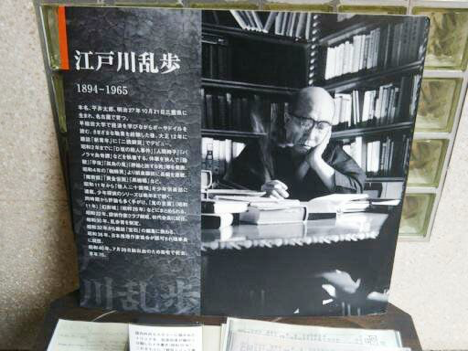 位在西池袋的江戶川亂步故居,大門鑲著平井太郎和獨子平井隆太郎(曾任立教大學教授)的名牌,彷彿故人依舊在。看似平凡的住家,玄關入口有一個小展覽室,書棚陳列亂步的代表作,另一頭展示亂步生前愛用的帽子、眼鏡和文具。雖然住家不能進入,觀客可以沿庭院繞屋子半圈,稍窺作家的家居生活。亂步邸絕非豪宅,只有當時屬於摩登的沙發、電話和壁爐,將十來坪大的會客室妝點得還算氣派。房間外壁改成的櫥窗,陳列許多珍本和初版著作,及亂步的親筆書法。最引人注目的,卻是庭院後方獨棟的書庫,這裡經豐島區在2003年指定為「有形文化財」,特別保護。
