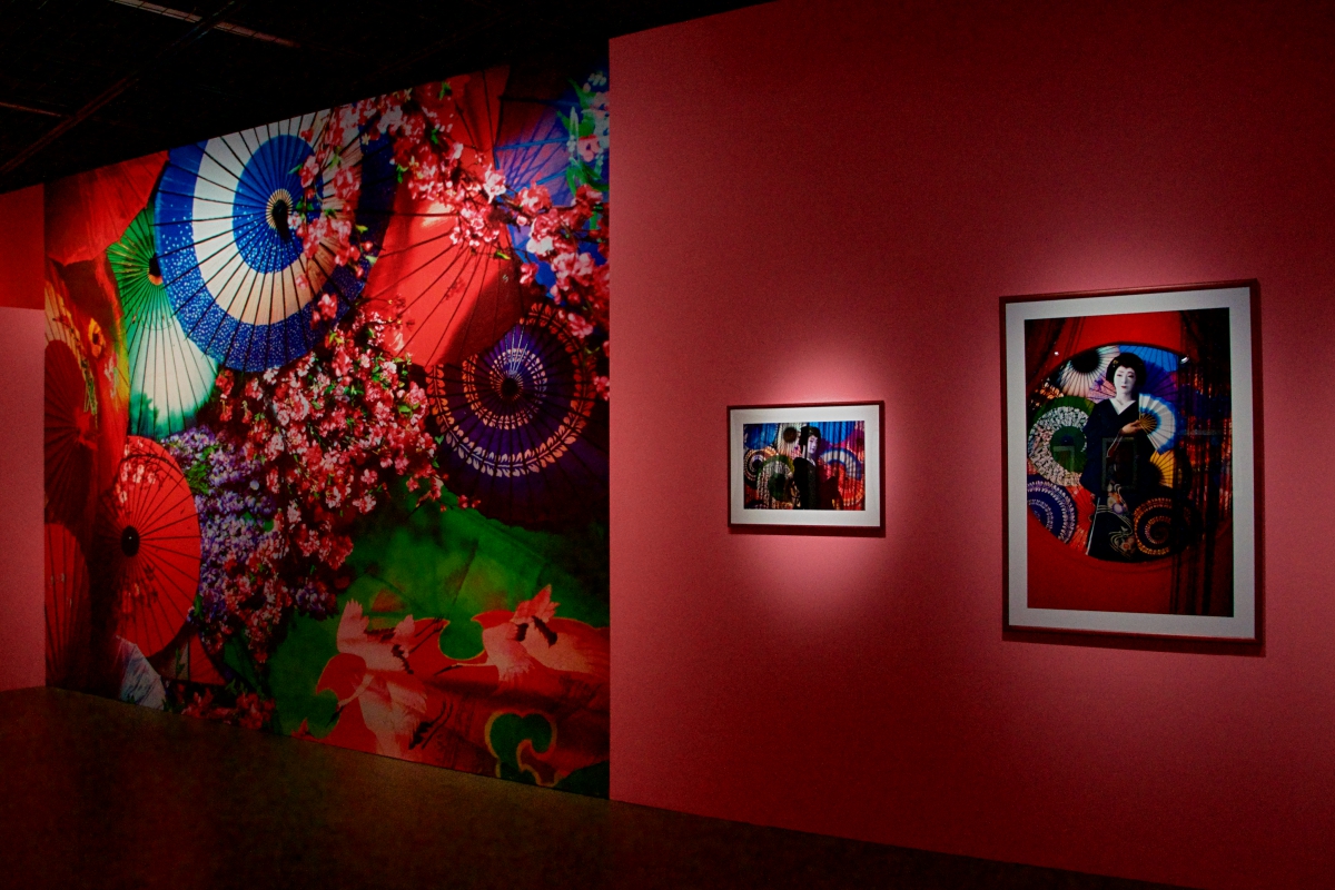同樣吸引許多參觀者自拍熱潮的,還有攝影師蜷川實花的展場。蜷川實花的作品色彩鮮豔、華麗絢爛,不只照片本身,展覽空間也延續這樣的風格,繽紛的大型背板前,自然也吸引許多人駐足自拍。