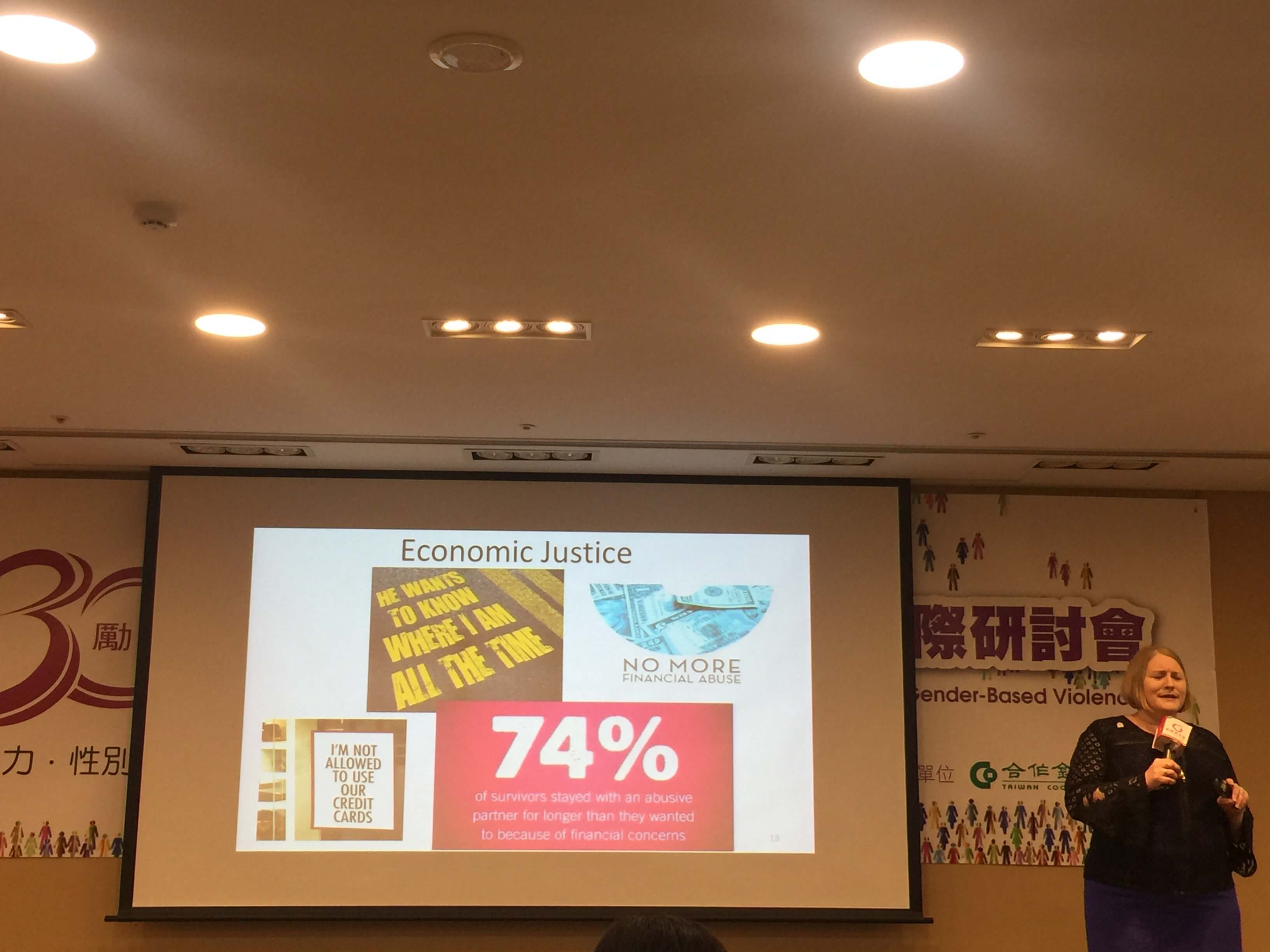 美國華盛頓特區全國終結家庭暴力網絡團體(NNEDV) 副執行長Cindy Southworth指出,家庭暴力和性別暴力在世界各地發生率仍居高不下,是全世界還在努力的議題。性別暴力不管宗教、種族、收入、教育等差異,每個人都有可能遭遇到。在過去的服務中,不僅協助家暴受害者,同時也致力於協助NGO組織、政府部門及警察單位提供訓練課程。