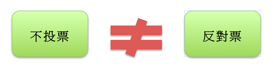細讀我國公投法30條後半的文字:「投票人數不足前項規定數額或未有有效投票數超過二分之一同意者,均為否決。」上述「前項規定數額」即合格選民二分之一的門檻。也就是說,把不投票者預設為「否決」,讓不投票者的缺席與投票者的反對票具有相同的效力,這是極不合理的。例如有論者建議「贊成續建」與「贊成停建」並列,原屬合理,但有以上條文,這個建議明顯不通,否則若投票率不足,造成雙雙否決豈不矛盾?